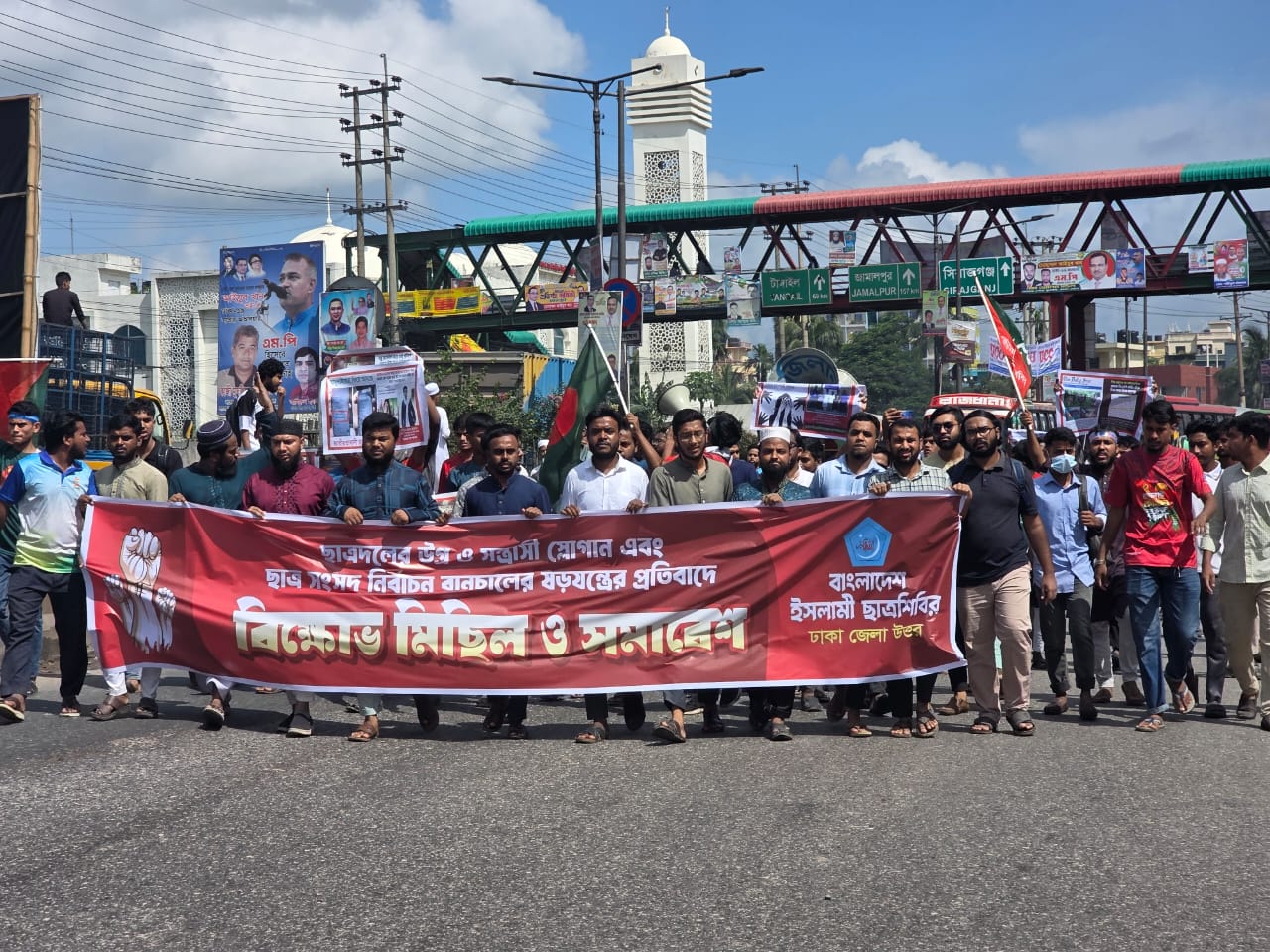 ডাকসুর সাবেক ভিপি ও গণঅধিকার পরিষদের সভাপতি নুরুল হক নুরের ওপর হামলার প্রতিবাদে আশুলিয়ায় মহাসড়ক অবরোধ করে বিক্ষোভ ও মিছিল